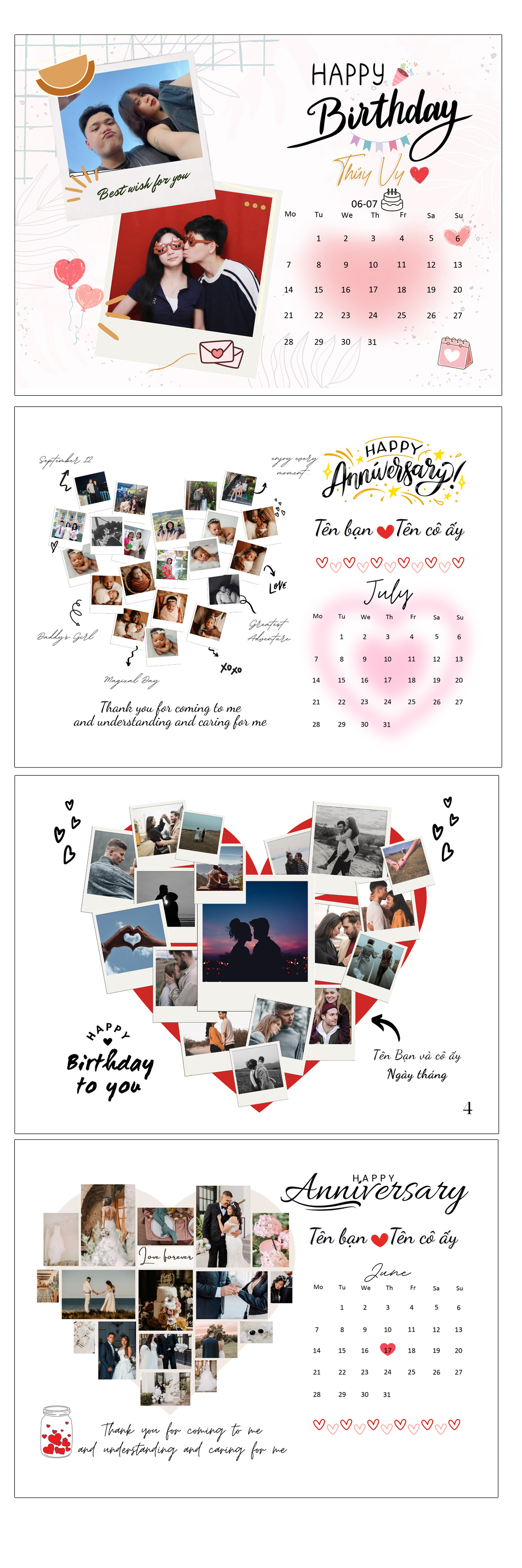 - Ảnh, bố cục có thể thay đổi được theo yêu cầu